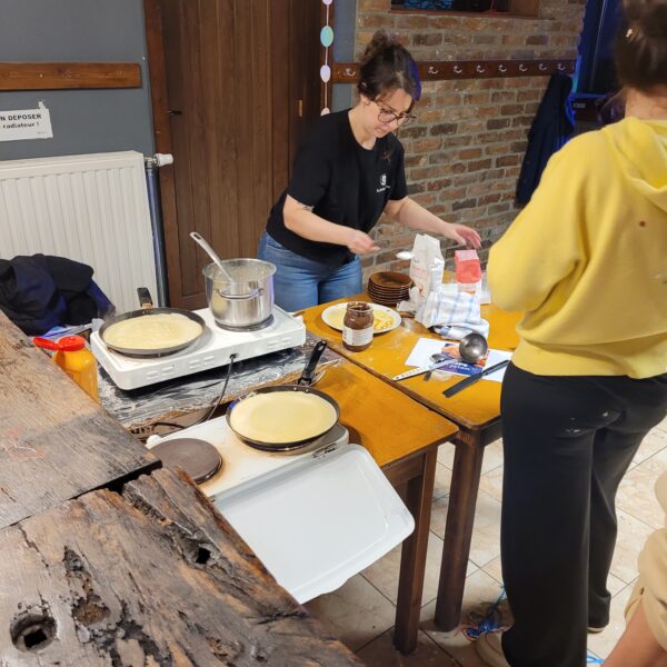 Côté gourmandises, le succès a été tout aussi impressionnant : les crêpes ont rencontré un tel engouement que nous avons dû retourner acheter plus d’ingrédients au magasin pour préparer davantage de pâte. Toutes les chiques ont été vendues, et presque tous les paquets de chips ont disparu. Petits gourmands !