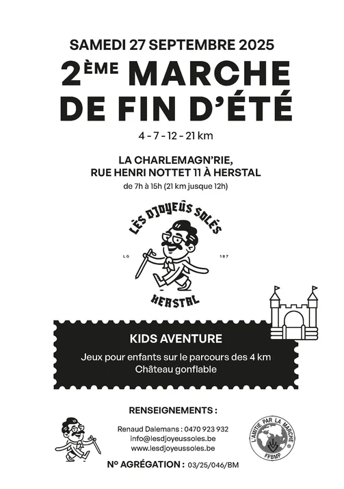 Marche placée sous le patronage de la Fédération Francophone Belge des Marches Populaires et de la F.I.S.P. (I.V.V.)